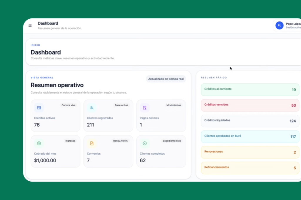 Automatiza procesos, mejora la recuperación y obtén control total de tu negocio financiero en una sola plataforma.
